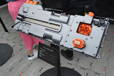 It’s a charging system – it’s called that because it’s got a semi-German father, and it’s got multiple functions. It’s a bi-directional on-board charger – it does 19.2kW in the US or in Europe in three-phase 22kW, which is twice as much as the competition, and of course, you can charge the car or you can use the car as a mobile energy storage device. It also uses exactly that charging hardware one-to-one with a different configuration driven by software as a boost charger. Why do we need this? This car uses a 924 high voltage system and there are still chargers at 400 volts. Now in order to charge 924 volts, we need to elevate the 400 volts to 924, and that’s what a boost charger does. So we can boost up the DC voltage from those chargers through the AC/DC charger onto our high voltage level. So, we’re saving money by using this one component in three ways – single directional charging, bi-directional charging and boost conversion.