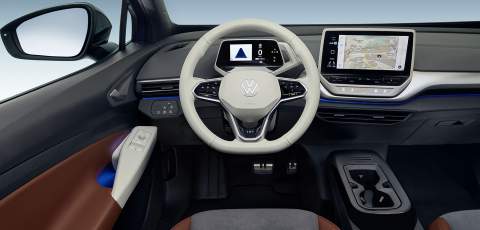 VW has done away with most of the button controls in the ID.4 with most of the car's functions controlled by a standard 10 inch central touchscreen with an optional 12 inch version available. The driver's display consists of a 5.3 inch digital cluster with head-up display. Also new on the ID.4 is the new ID.Light – a light strip at the base of the windscreen which supports various car functions using light cues. You can learn more about the interior in our previous story.
