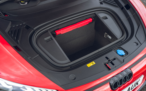 There are also some ergonomic quirks. Personally I am not a fan of Audi's preference for chopping off the top and bottom of the steering wheel. Also, the touch-sensitive controls are frustratingly easy to mis-press. Even simple things, like USB-C ports hidden under the armrest or the awkwardly placed frunk release, all feel unnecessarily fiddly.